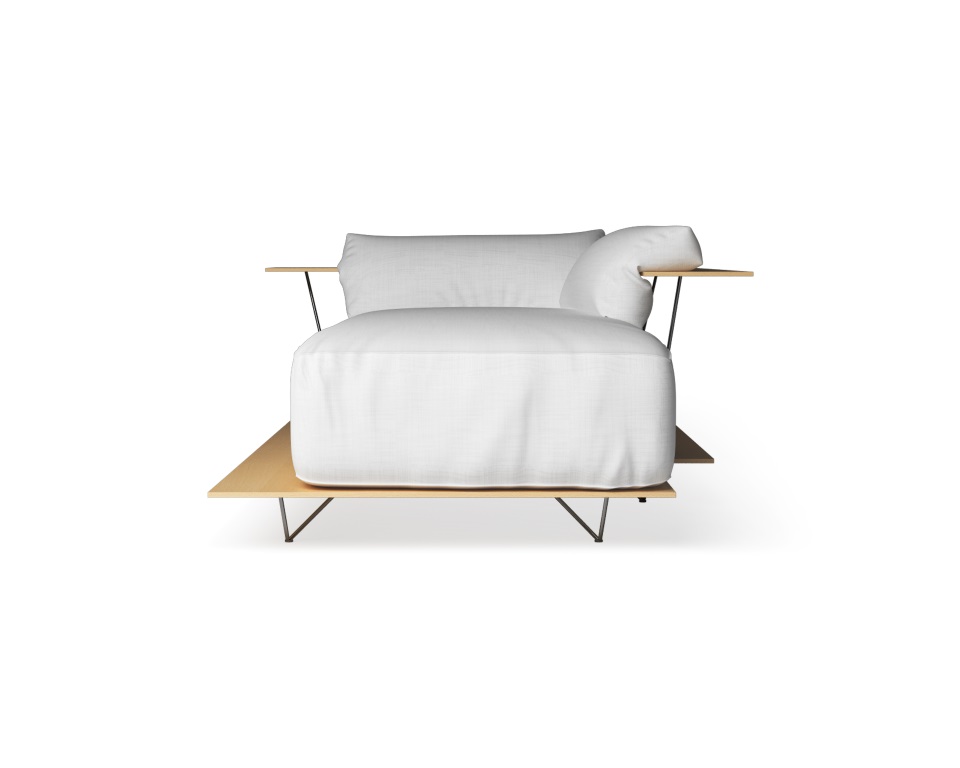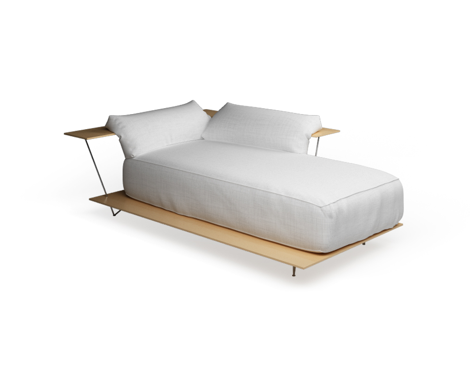 Dormeuse in faggio con struttura in acciaio e cuscini in lino bianco