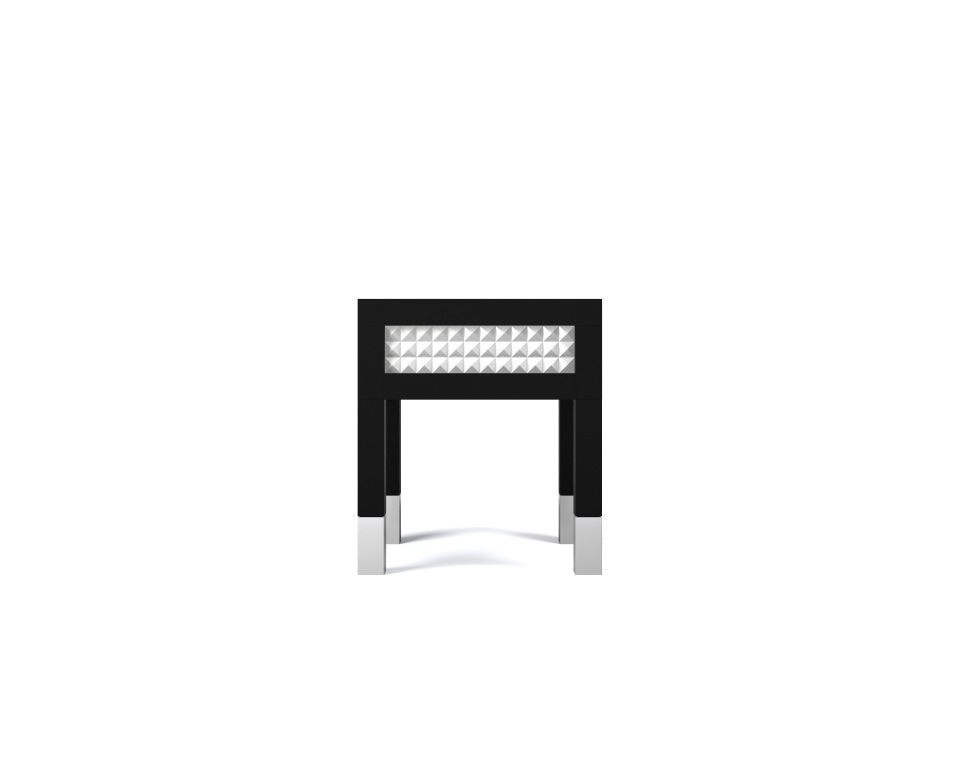 Comodino laccato nero opaco e bianco con cassetto