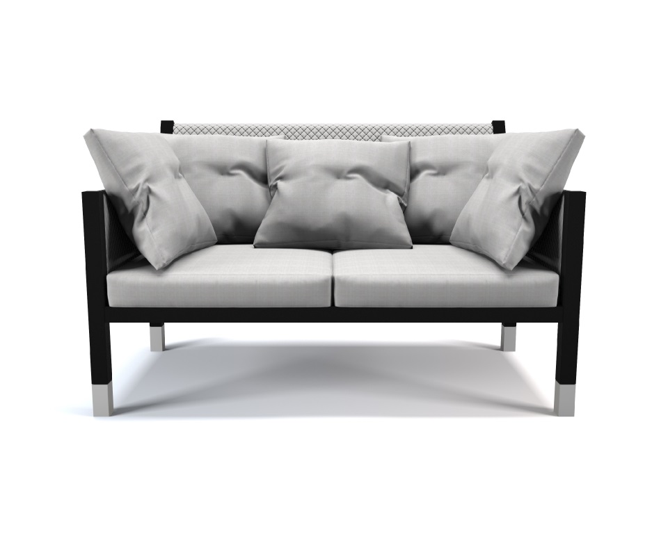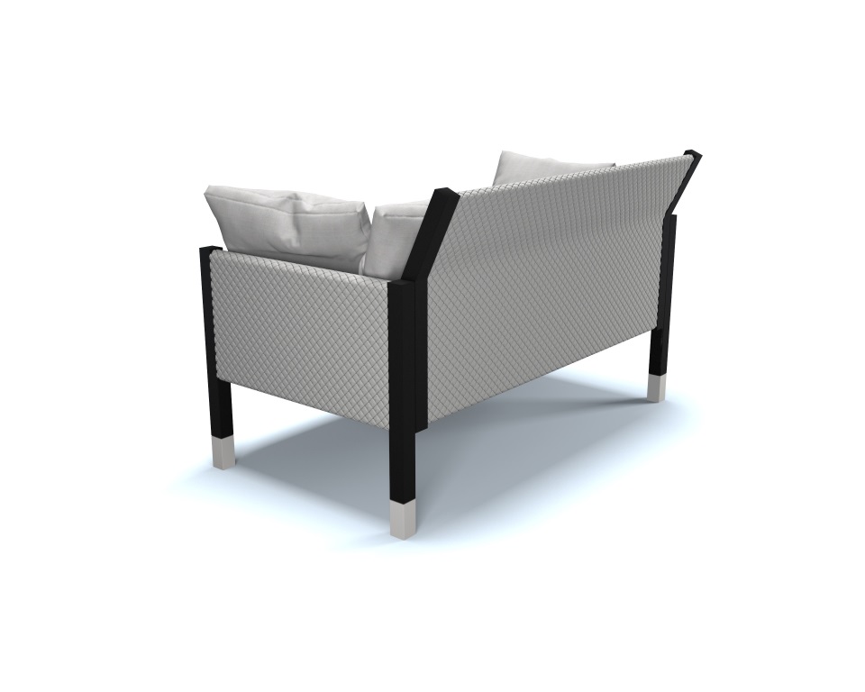 Divano 2 posti laccato nero opaco e bianco con tessuto di lino bianco