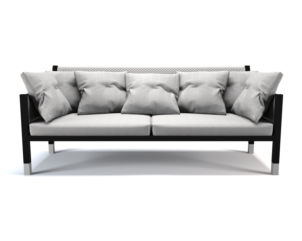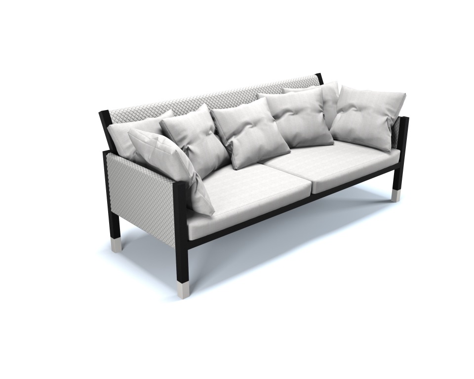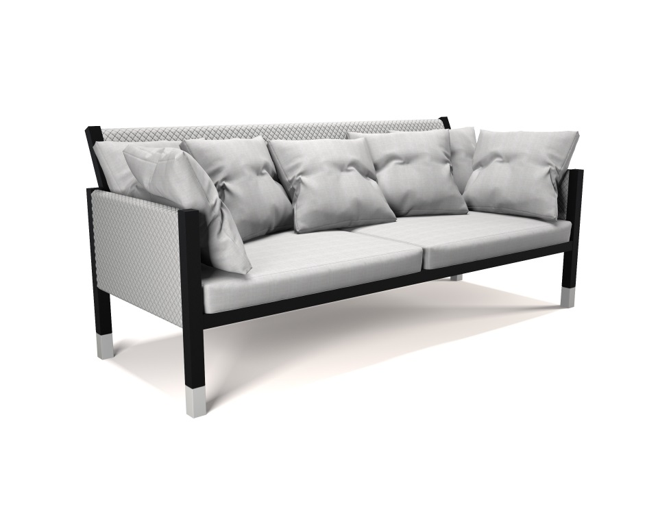 Divano 3 posti laccato nero opaco e bianco con tessuto di lino bianco