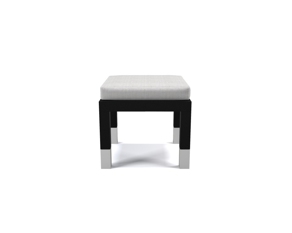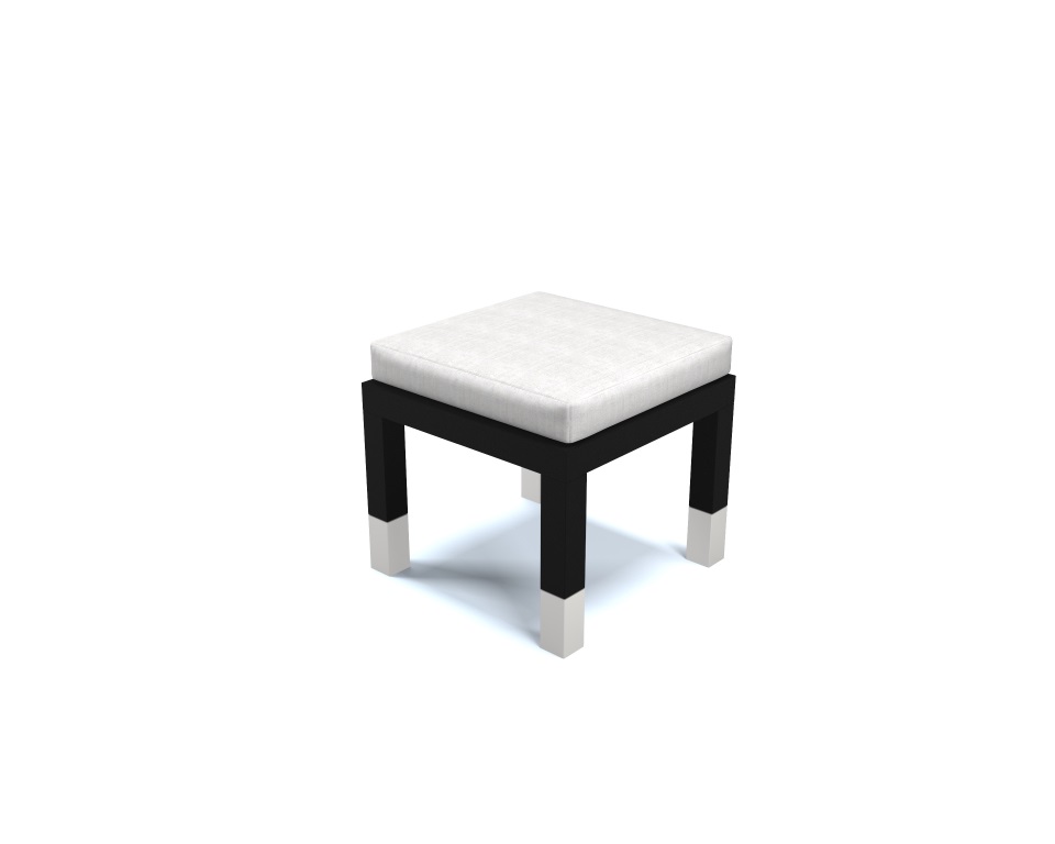 Pouff laccato nero opaco e bianco con tessuto di lino bianco