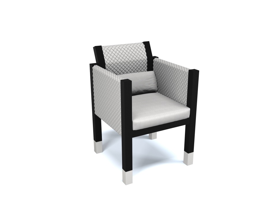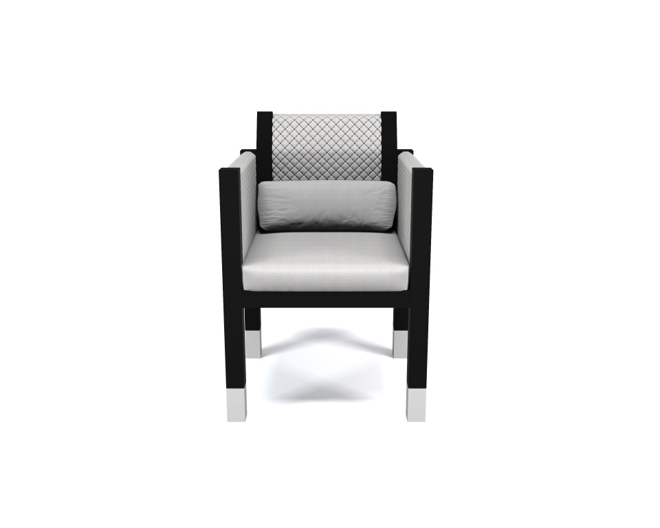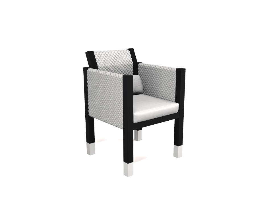 Sedia laccata nero opaco e bianco con tessuto di lino bianco