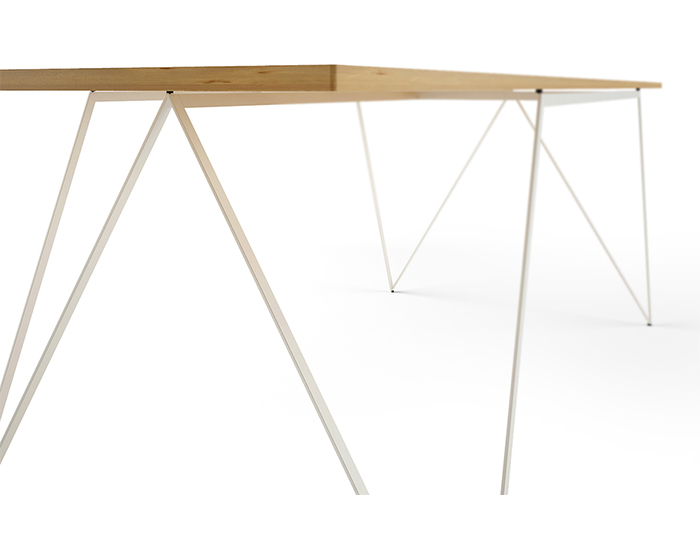 Tavolo in ferro verniciato opaco bianco con piano in legno di betulla
