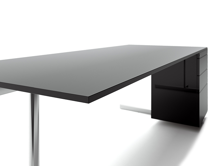 Scrivania laccato opaco nero grafite con piedi acciaio inox