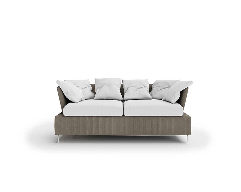Finiture: Struttura in tessuto metallico per esterno – Cuscini sfoderabili nei tessuti per esterni