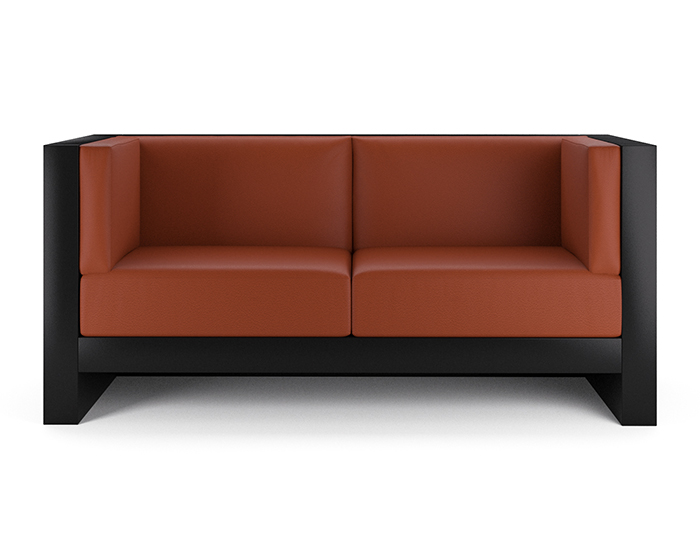Divano laccato opaco ardesia con seduta in pelle nappa colore rosso bulgaro