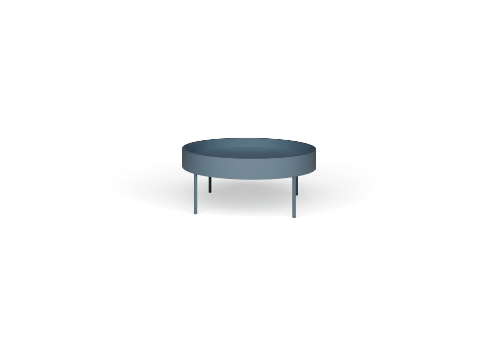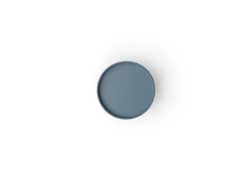 Tavolino rotondo a vassoio. Piede avio-Vassoio avio. Variante: Gamba bianco-Vassoio azzurro.