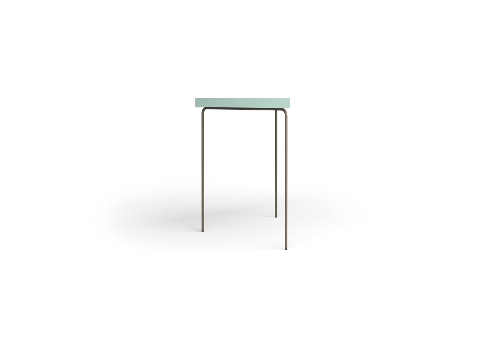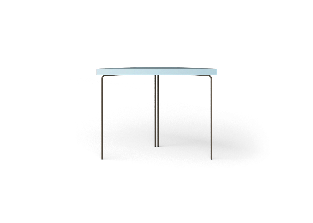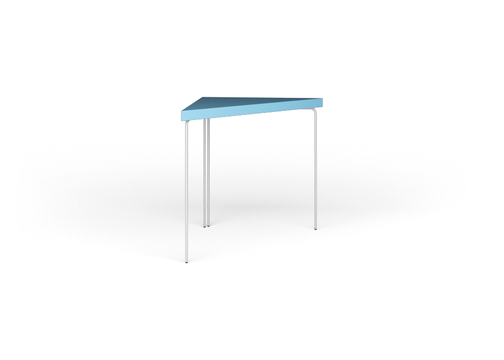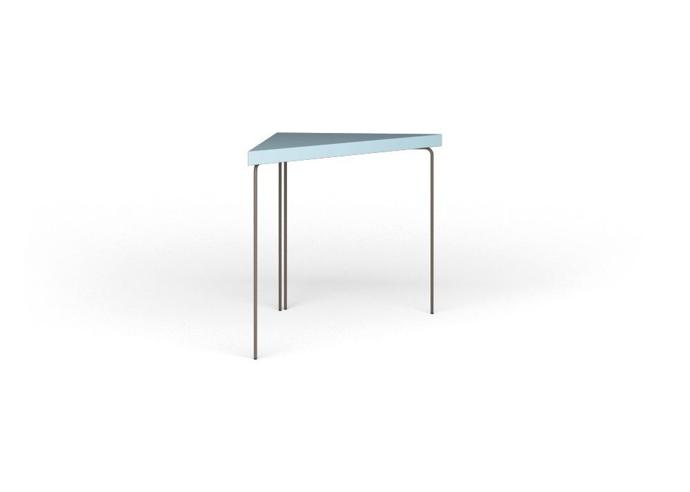 Scrittoio triangolare ad angolo. Piede U. Box fango-Piano polvere. Variante: Gamba bianco-Piano azzurro.