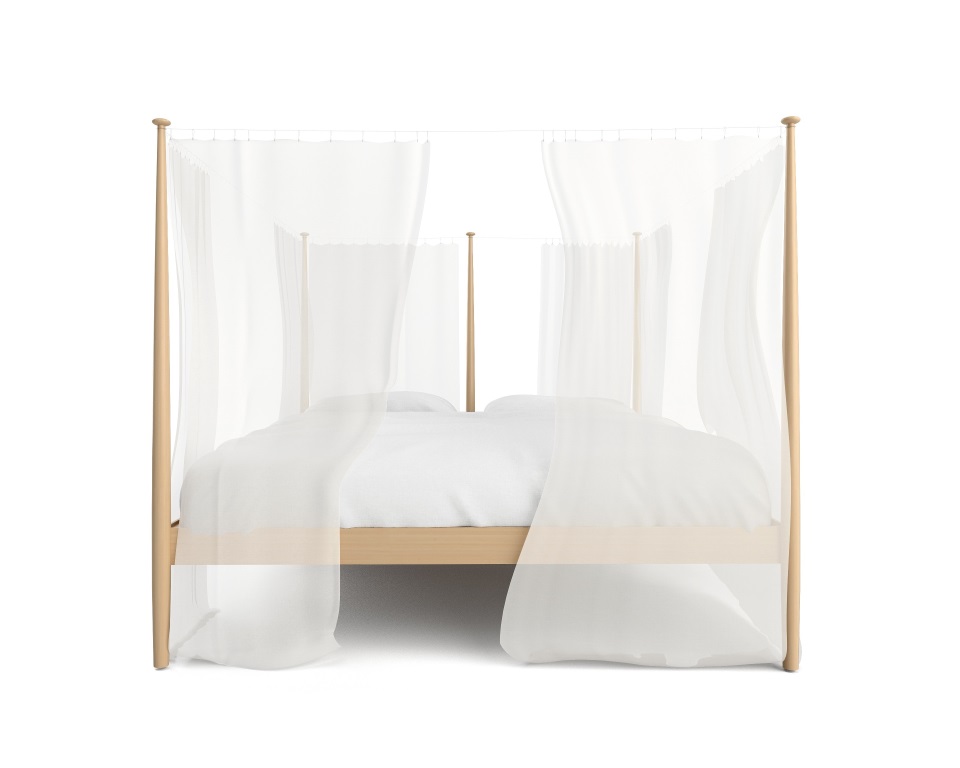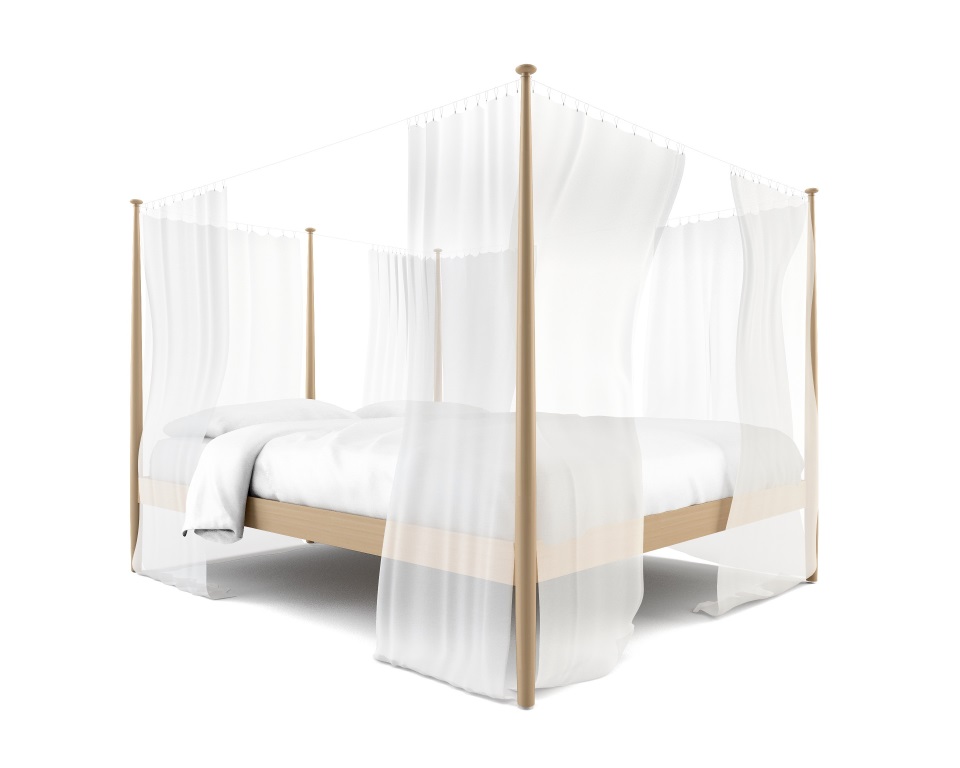 Baldacchino in masso di faggio naturale con teli in lino.