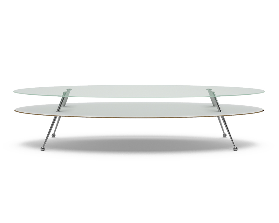Tavolino con piedi acciaio inox e piani in laminato / vetro trasparente