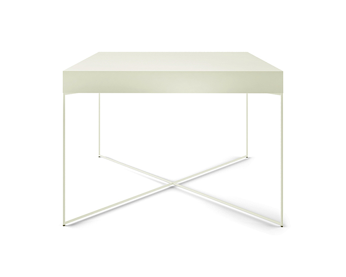 Tavolo in ferro verniciato opaco bianco sezione rotonda con piano laccato opaco bianco