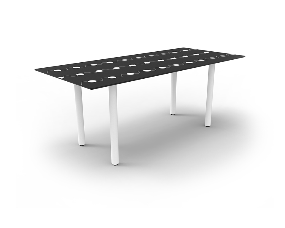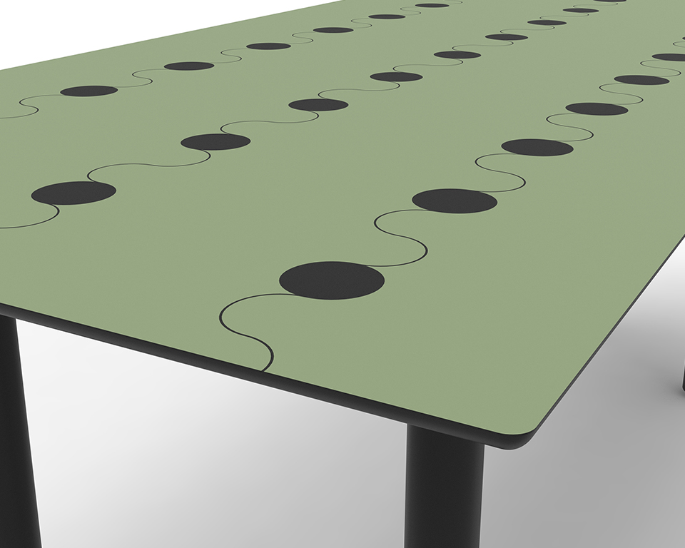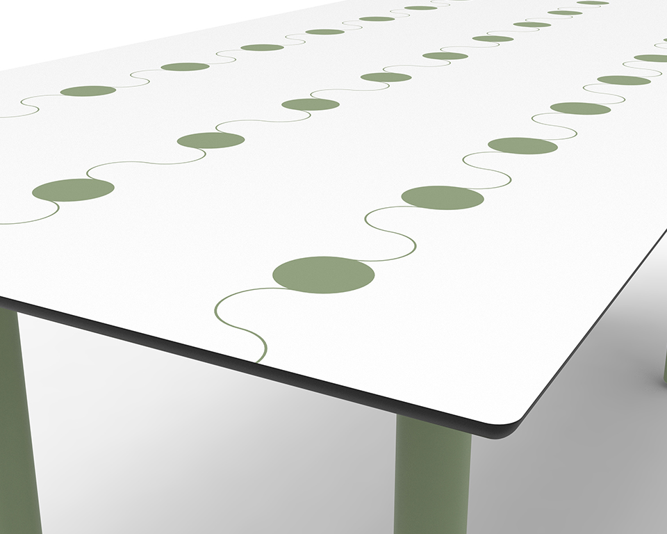 Tavolo rettangolare in ferro verniciato con piano in laminato stampato