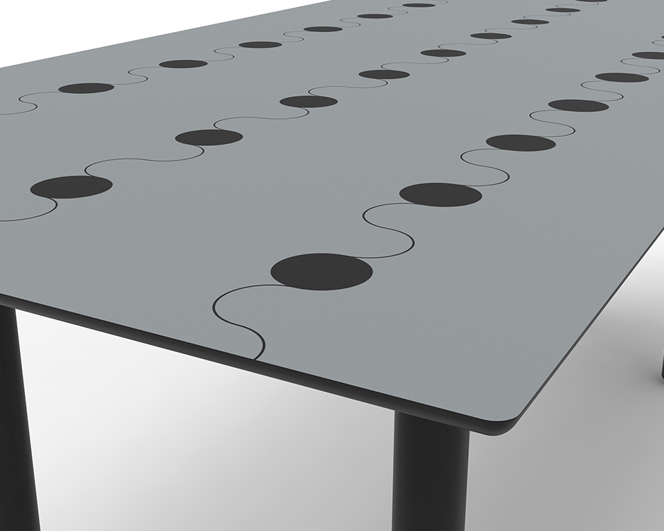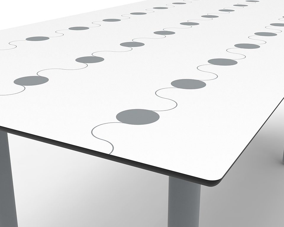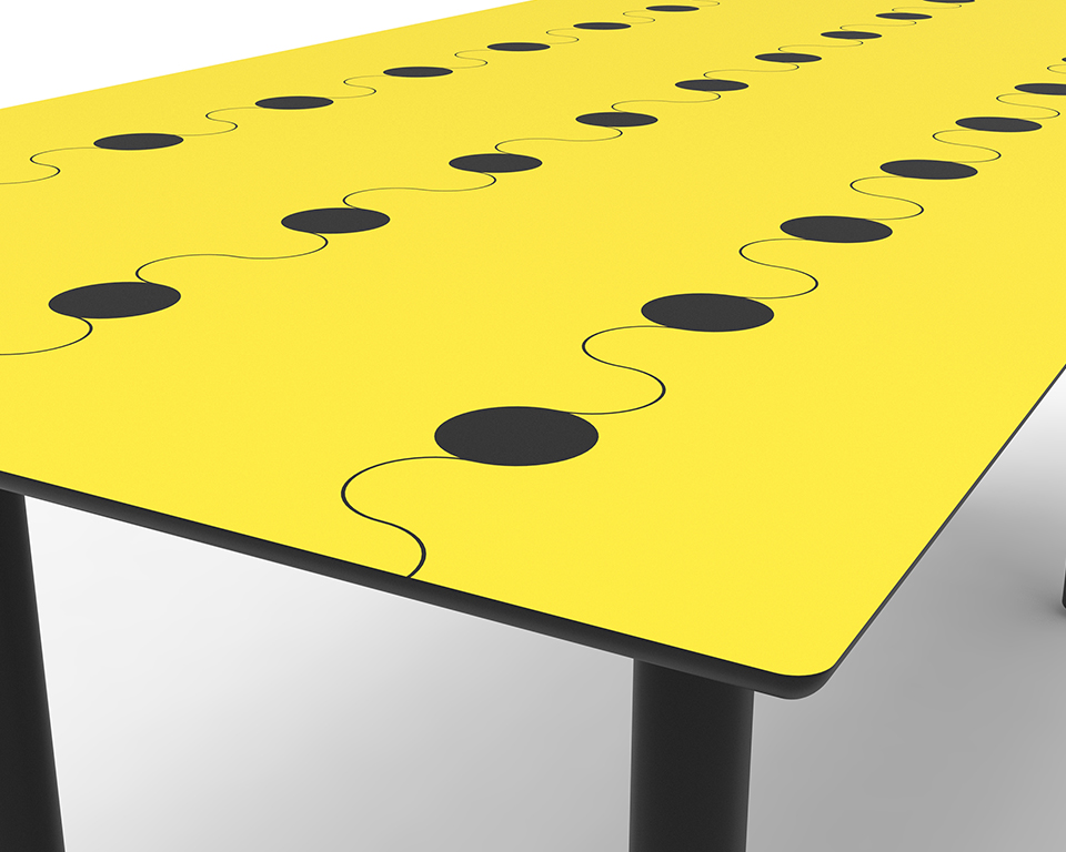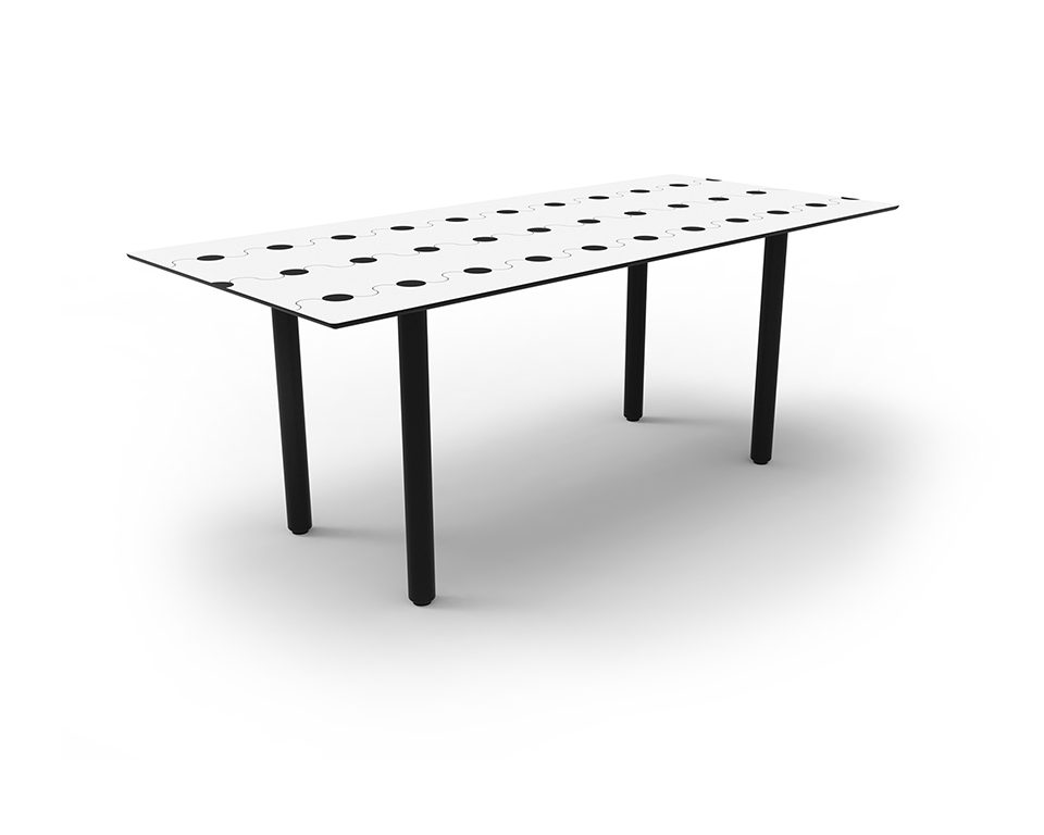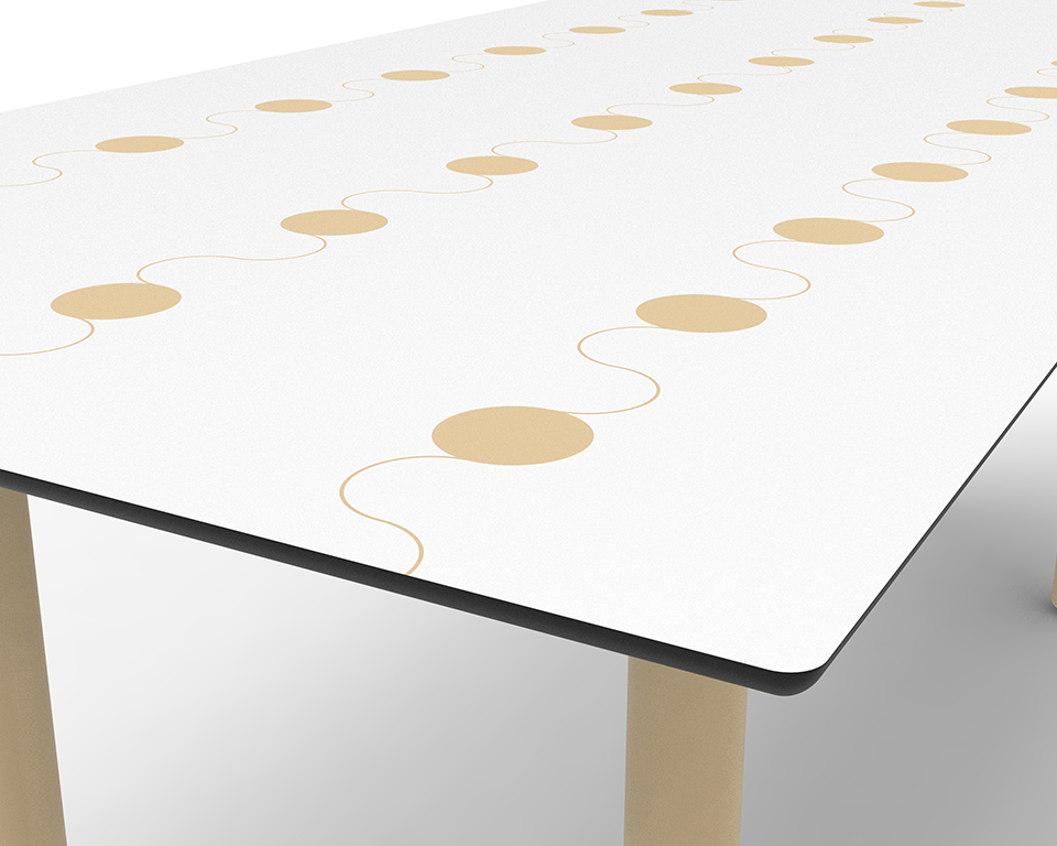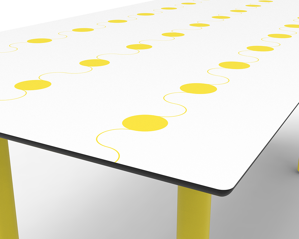 Finiture: Struttura in ferro verniciato opaco a polvere epossidica, bianco, nero o in tinta colore del piano in laminato stampato in digitale
