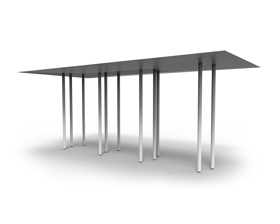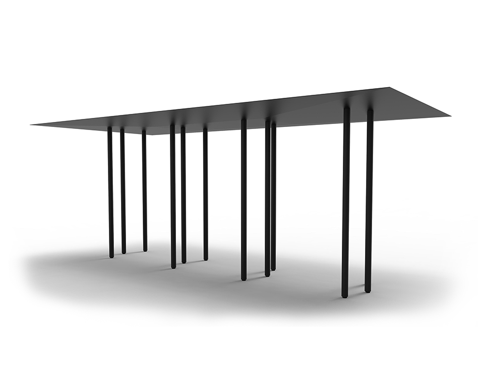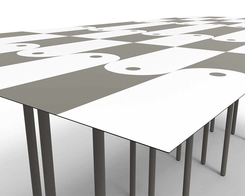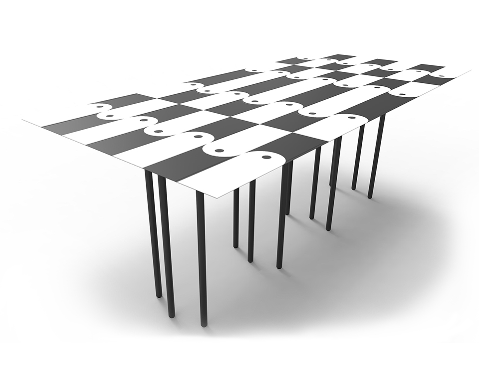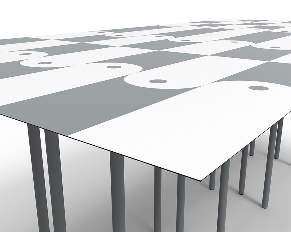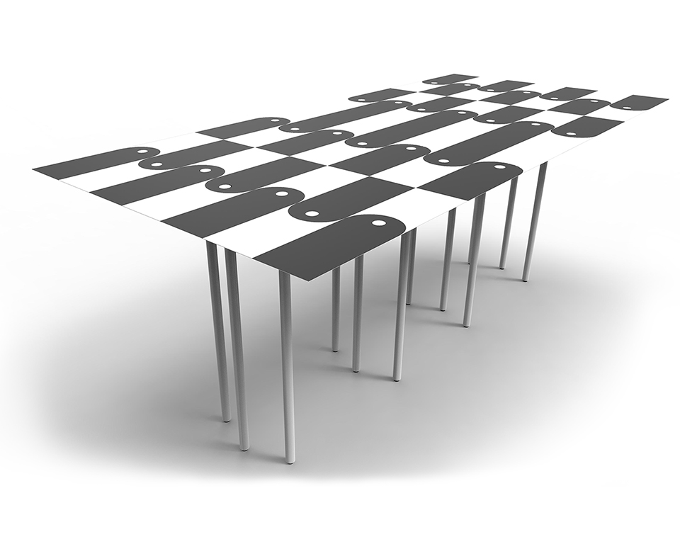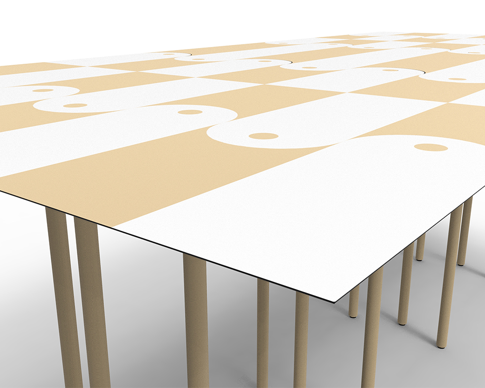 Finiture: Struttura in ferro verniciato opaco a polvere epossidica, bianco, nero o in tinta colore del piano in laminato stampato in digitale
