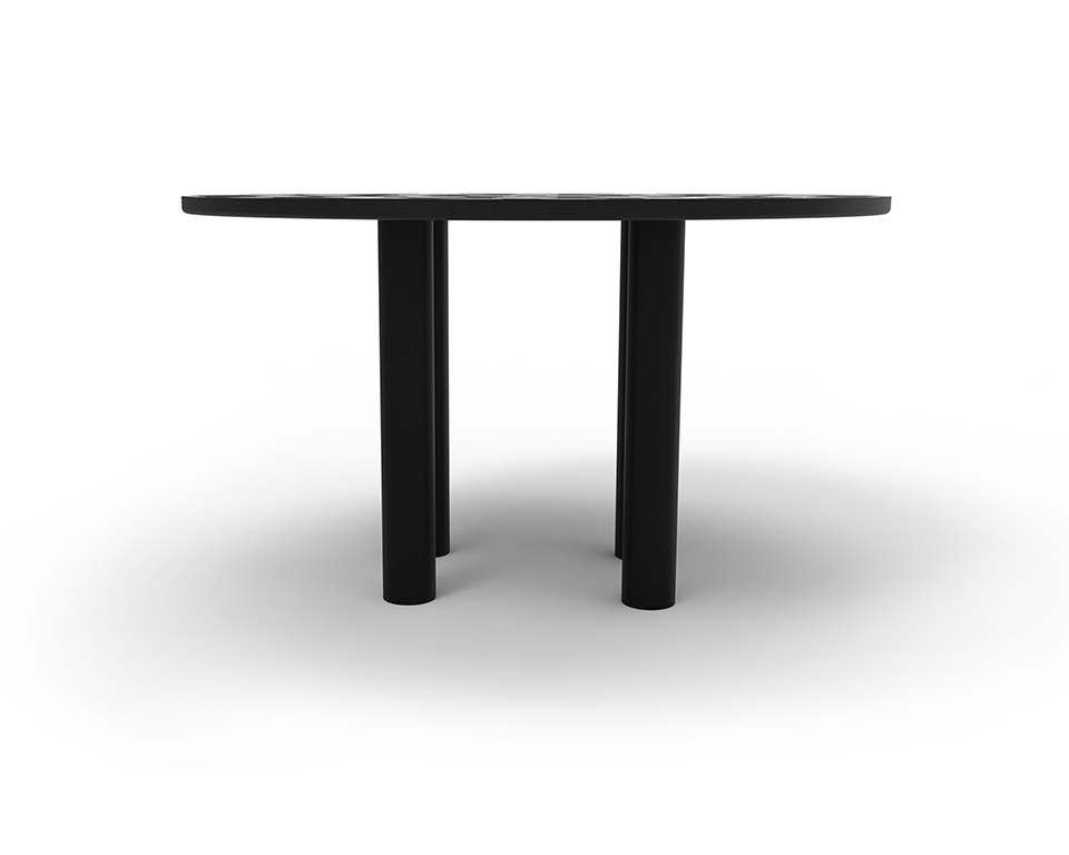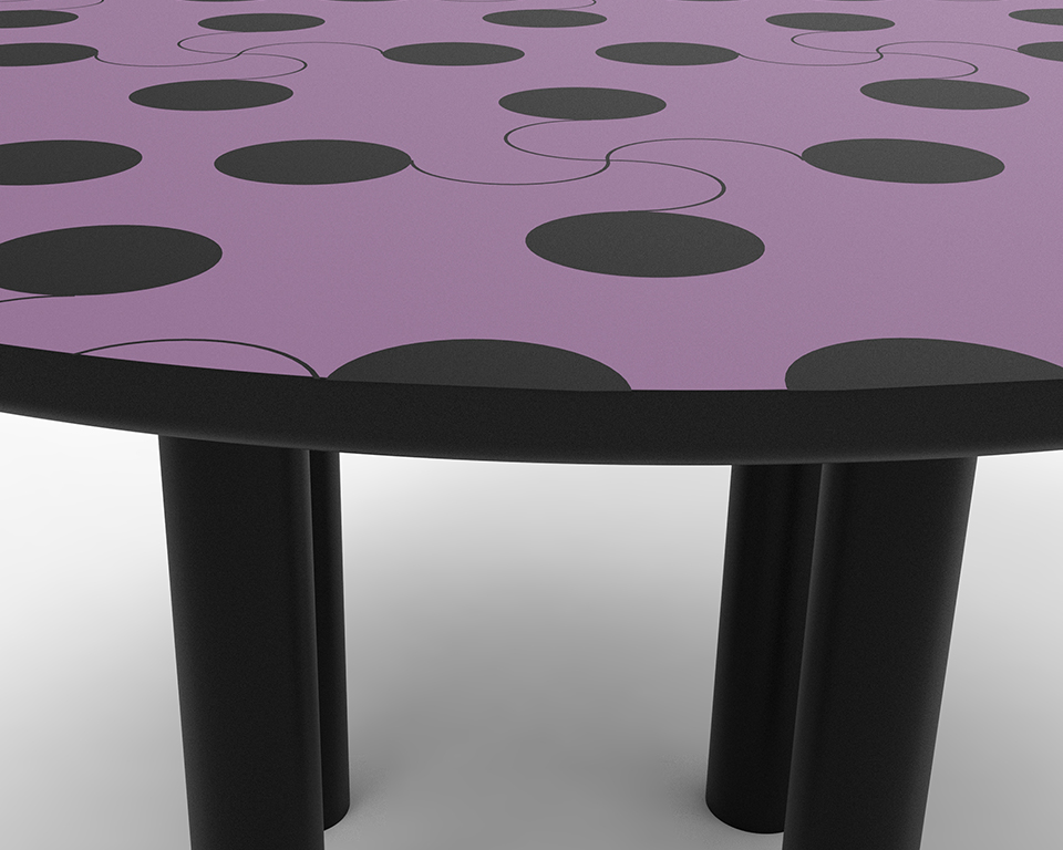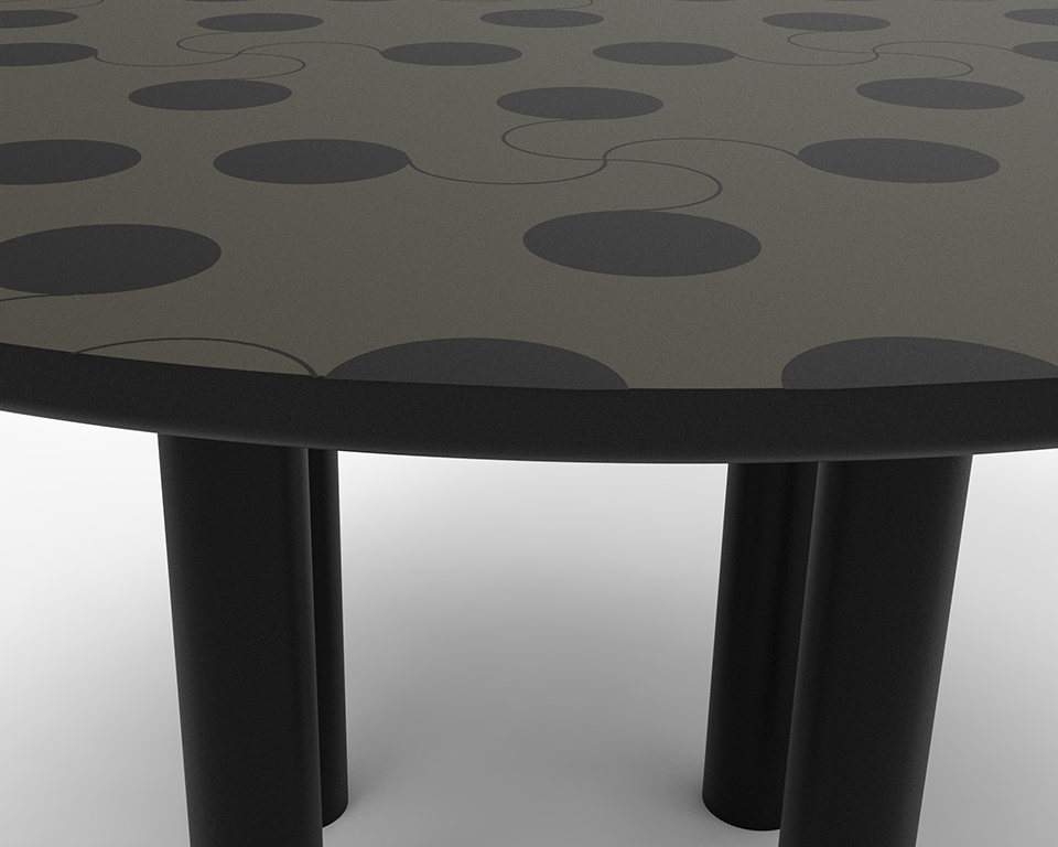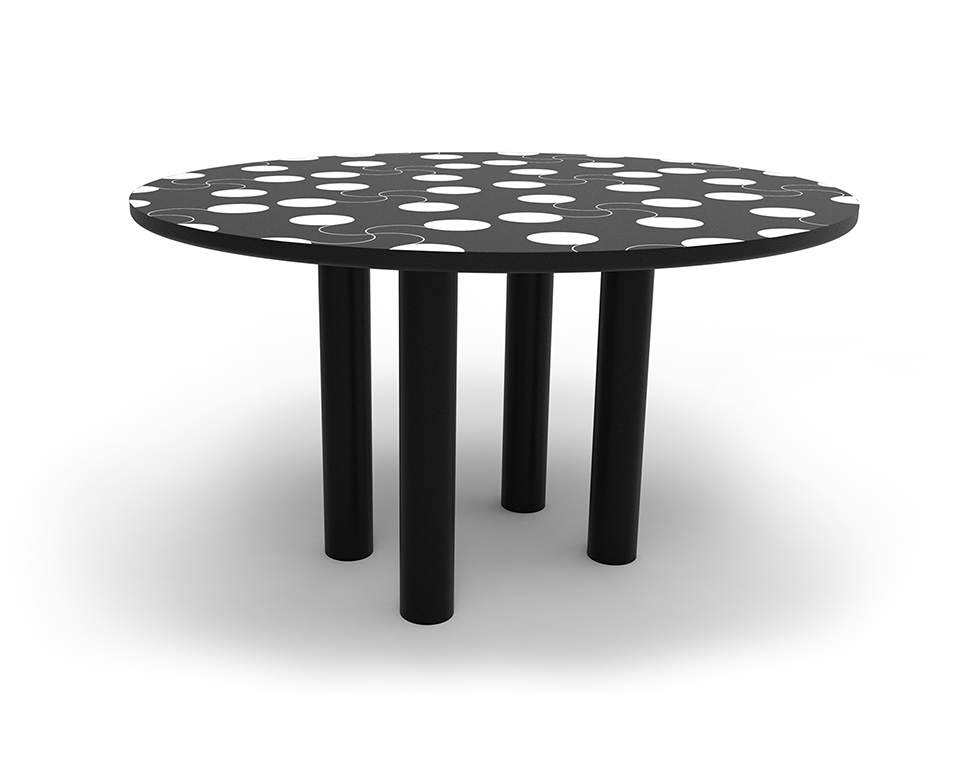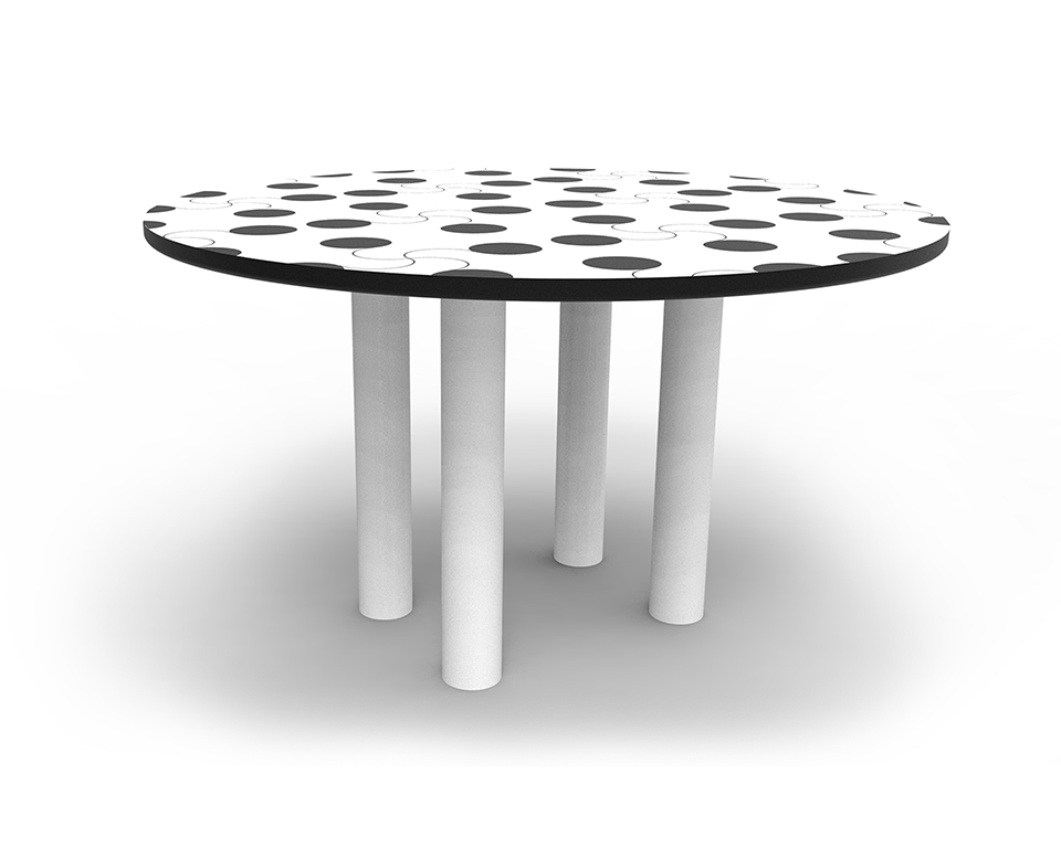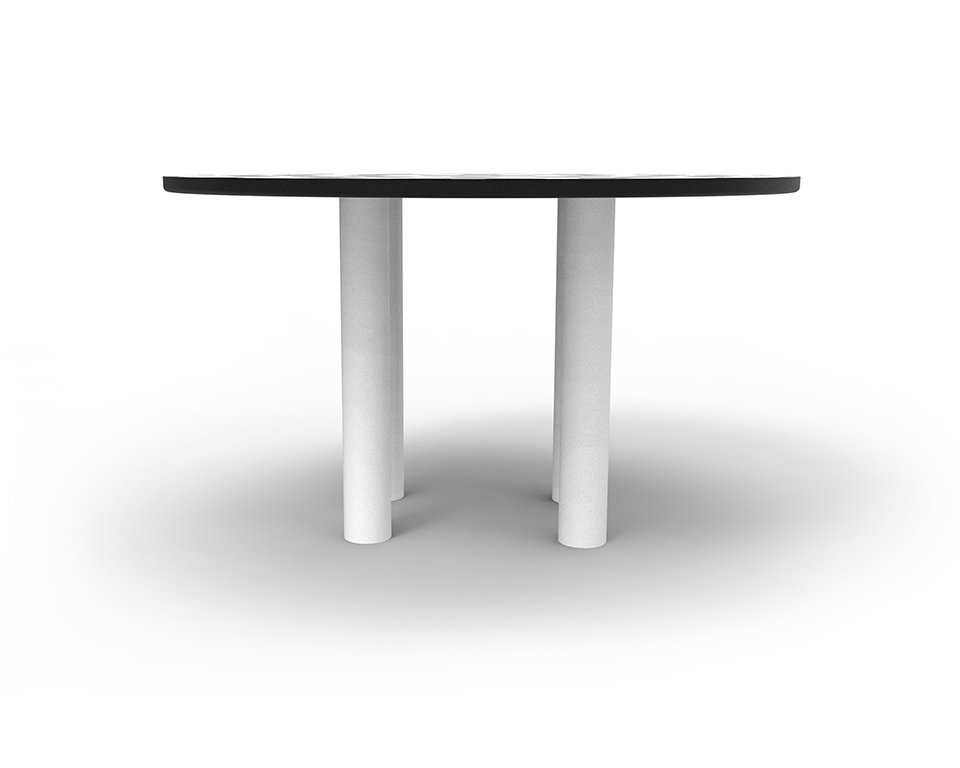 Tavolo rotondo in ferro verniciato con piano in laminato stampato