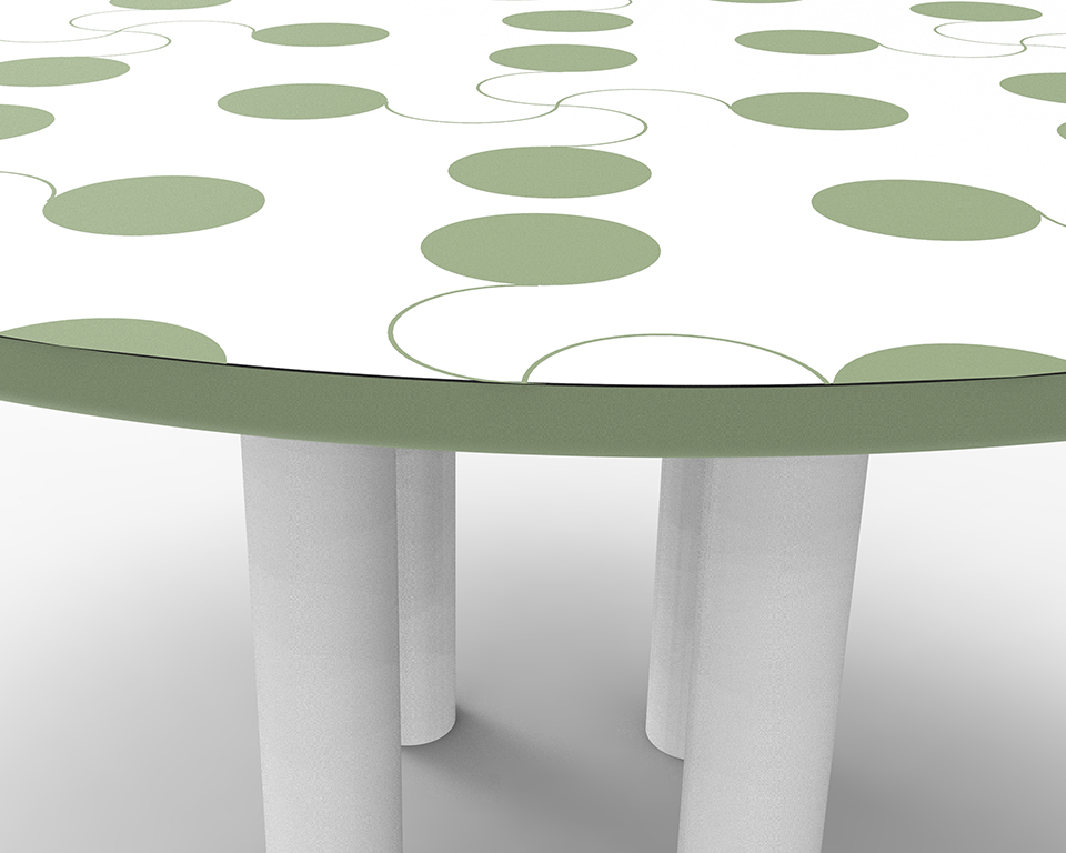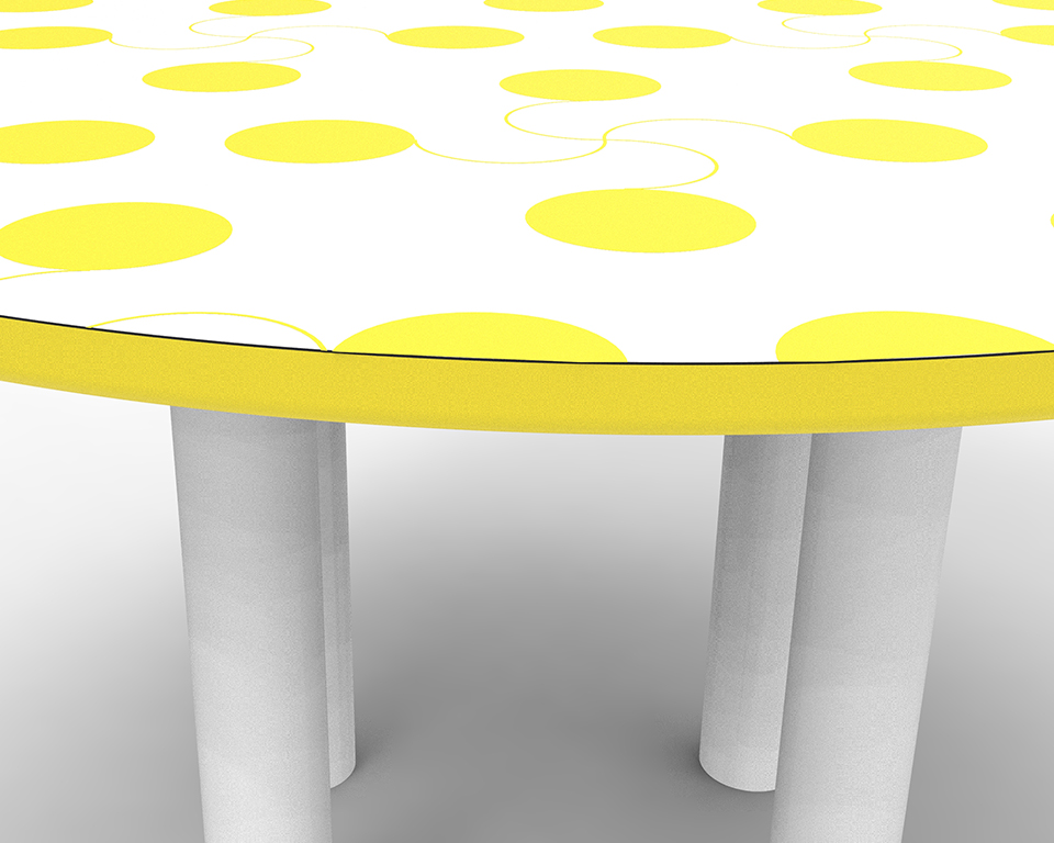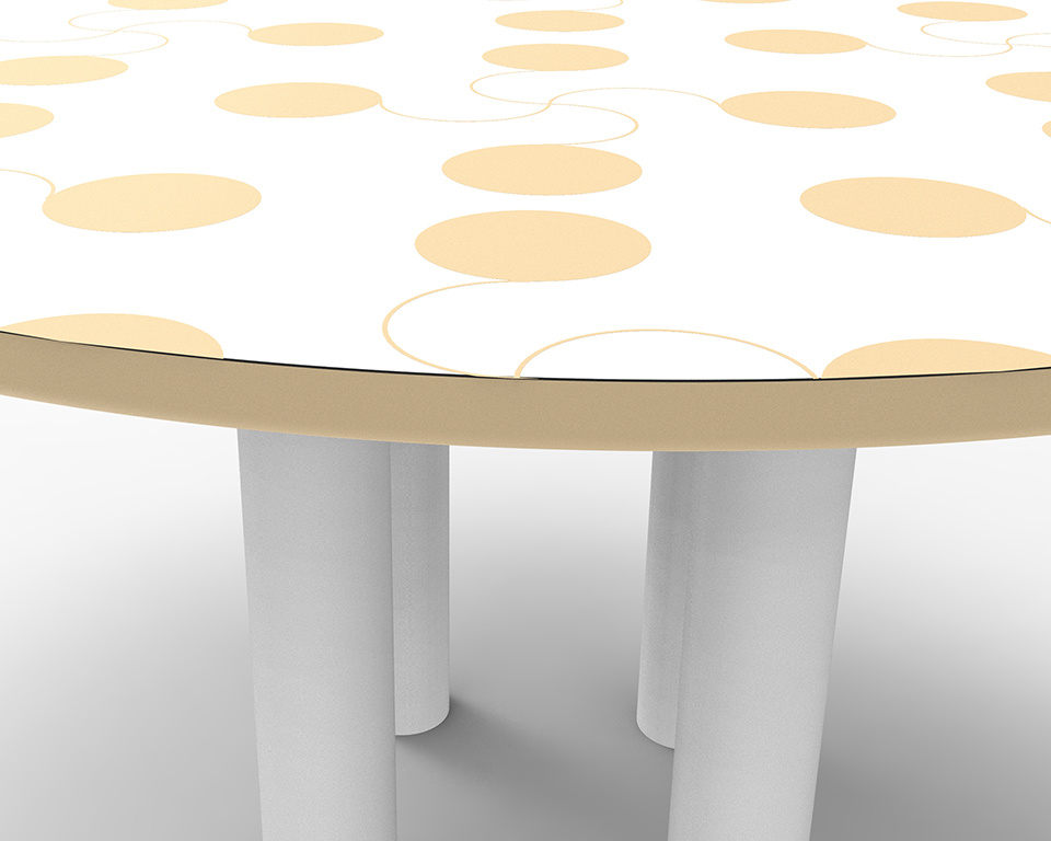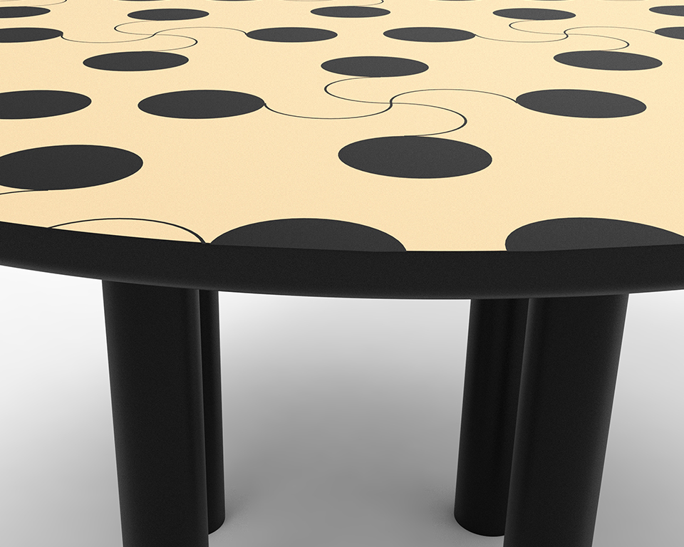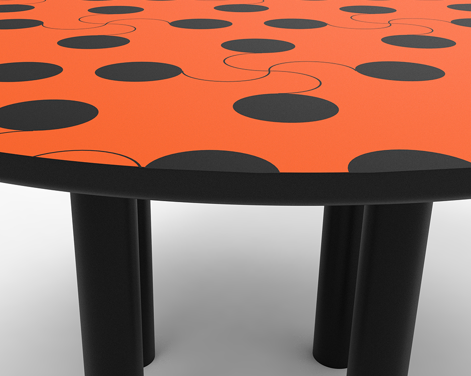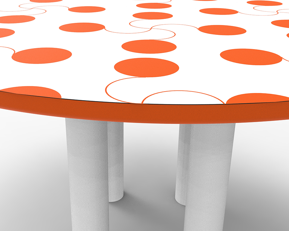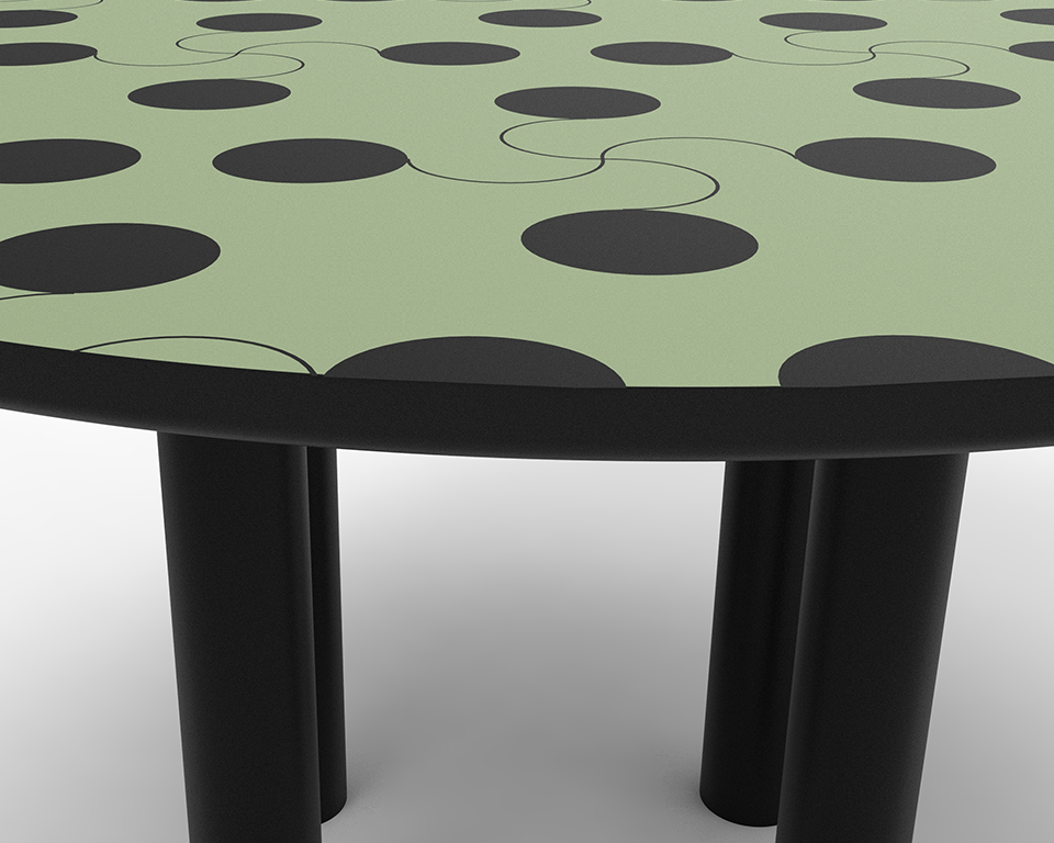 Tavolo rotondo in ferro verniciato con piano in laminato stampato
