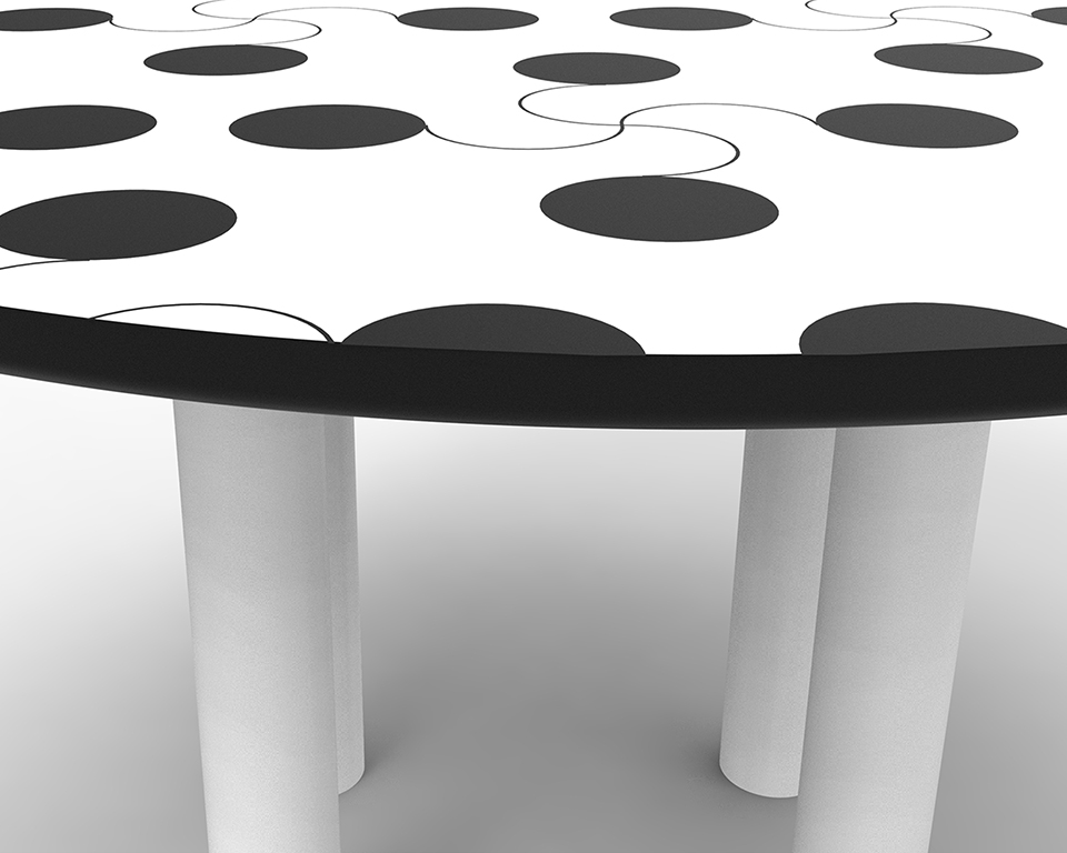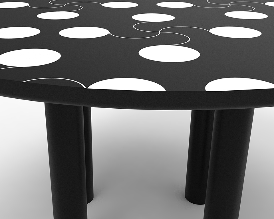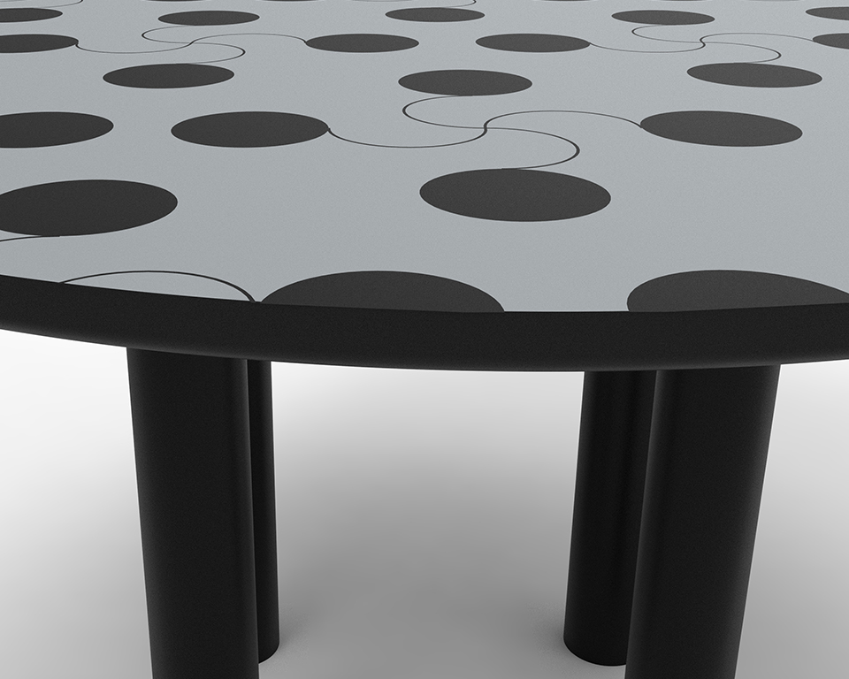Finiture: Struttura in ferro verniciato opaco a polvere epossidica, bianco o nero, piano in laminato stampato in digitale