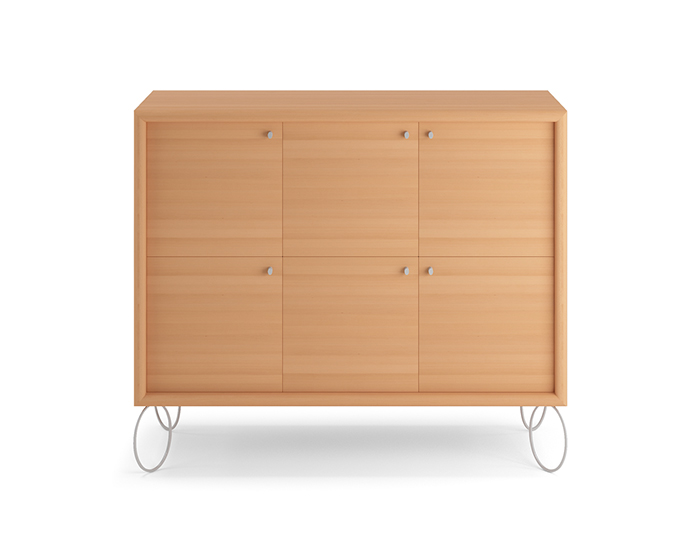 Mobile contenitore in legno di faggio con piedi e pomelli acciaio inox