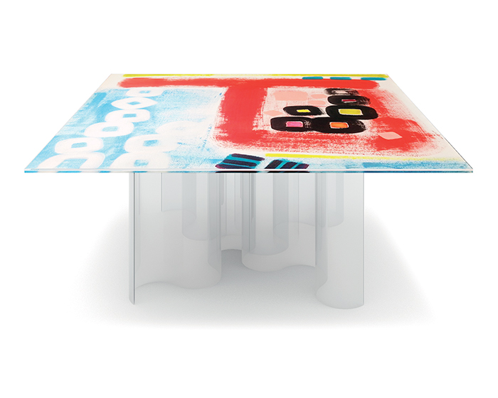 Finiture: base in vetro curvato e piano in doppio vetro stampato in digitale