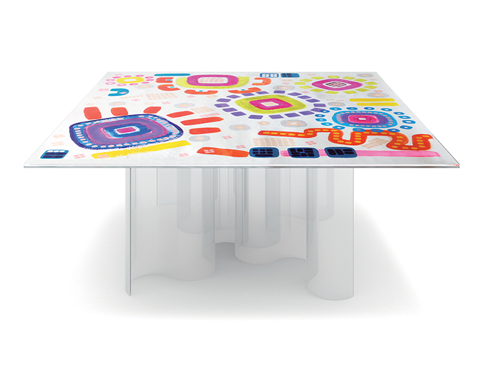 Finiture: base in vetro curvato e piano in doppio vetro stampato in digitale