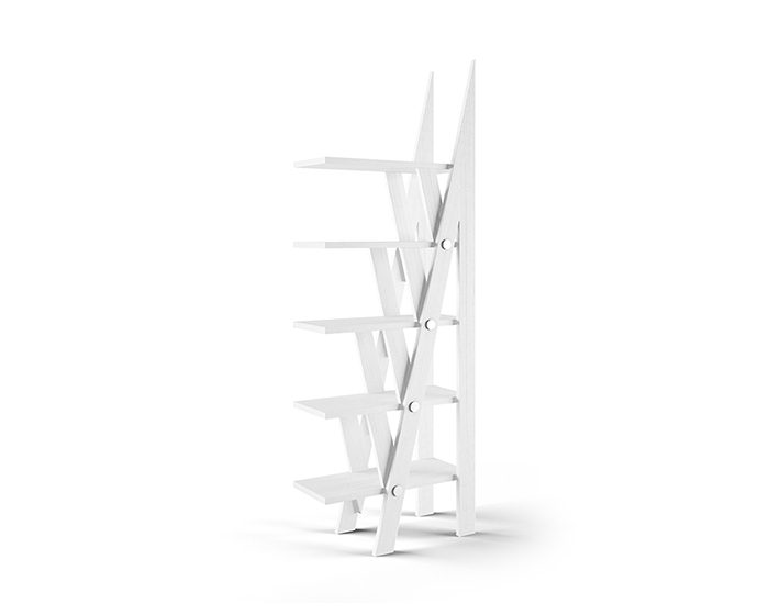 Scaffale in legno di frassino verniciato bianco