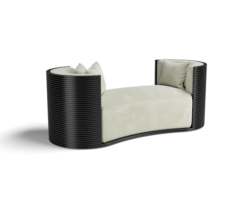 Chaise Longue laccata nero e tessuto Alcantara